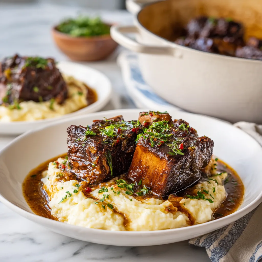 These short ribs are not delicate. They are dramatic, powerful, and deeply satisfying, earning their place as a true winter feast. Long cooking transforms tough cuts into fork-tender meat while concentrating the sauce into something nearly spoonable on its own.