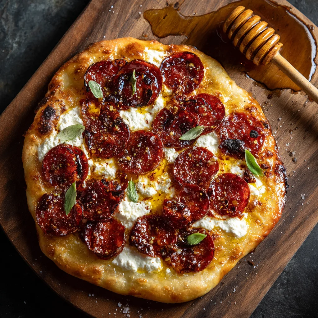 Hot Honey Pizza with Ricotta & Pepperoni