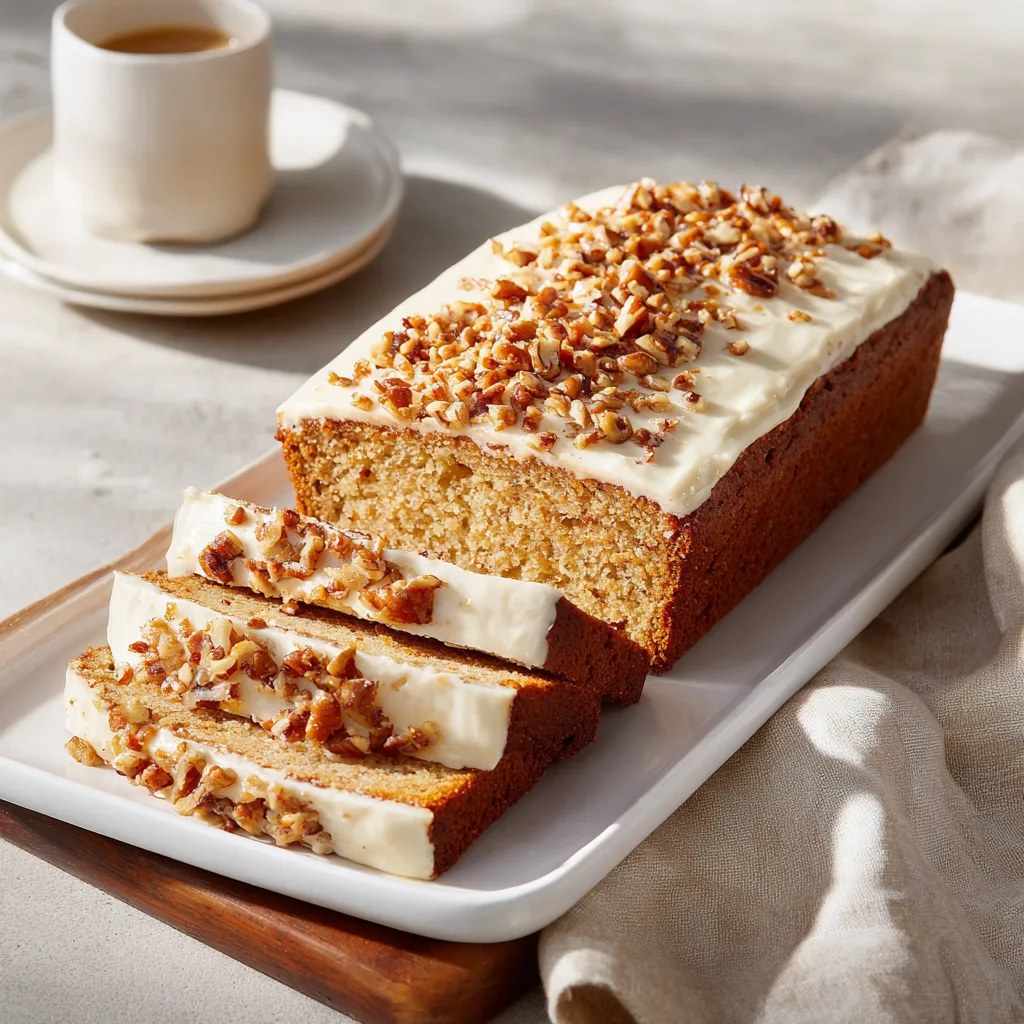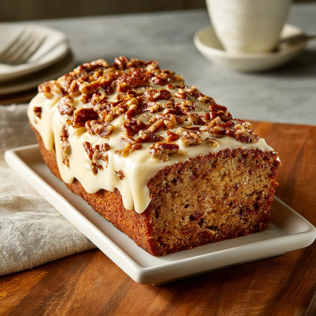 - Ice the cake: Spread cream cheese icing over the cooled loaf. Top with additional chopped pecans if desired.