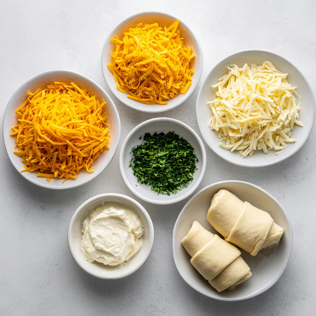 - Prepare cheese filling. In a small bowl, mix shredded cheddar, cream cheese, garlic powder, and Italian seasoning until well combined.