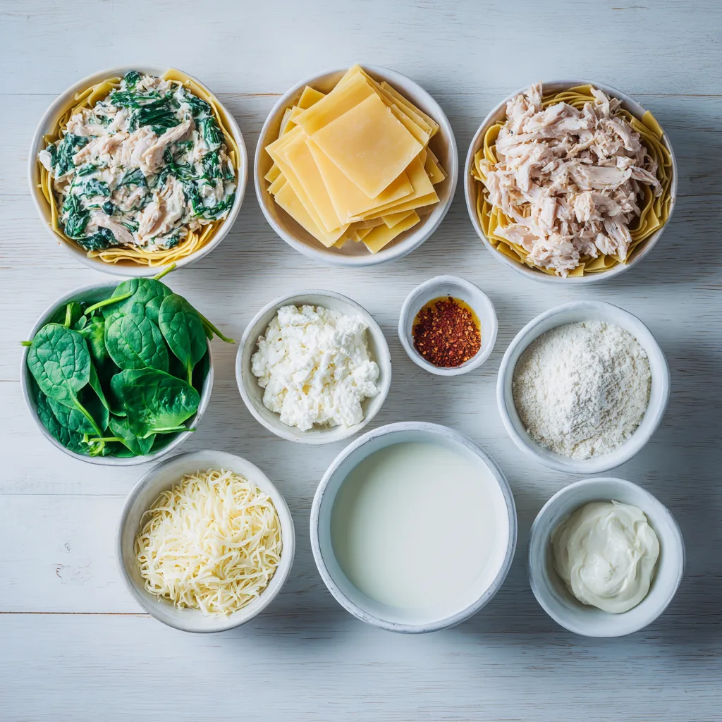 Stir the shredded chicken and spinach into the sauce. Let it simmer for 2–3 minutes until the flavors meld together. - Assemble the Layers: