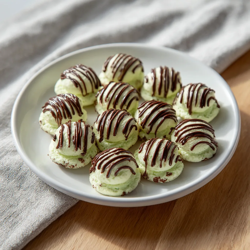 Bite-sized, no-bake treats combining creamy mint-flavored cream cheese with a smooth chocolate coating, perfect for holidays and parties.