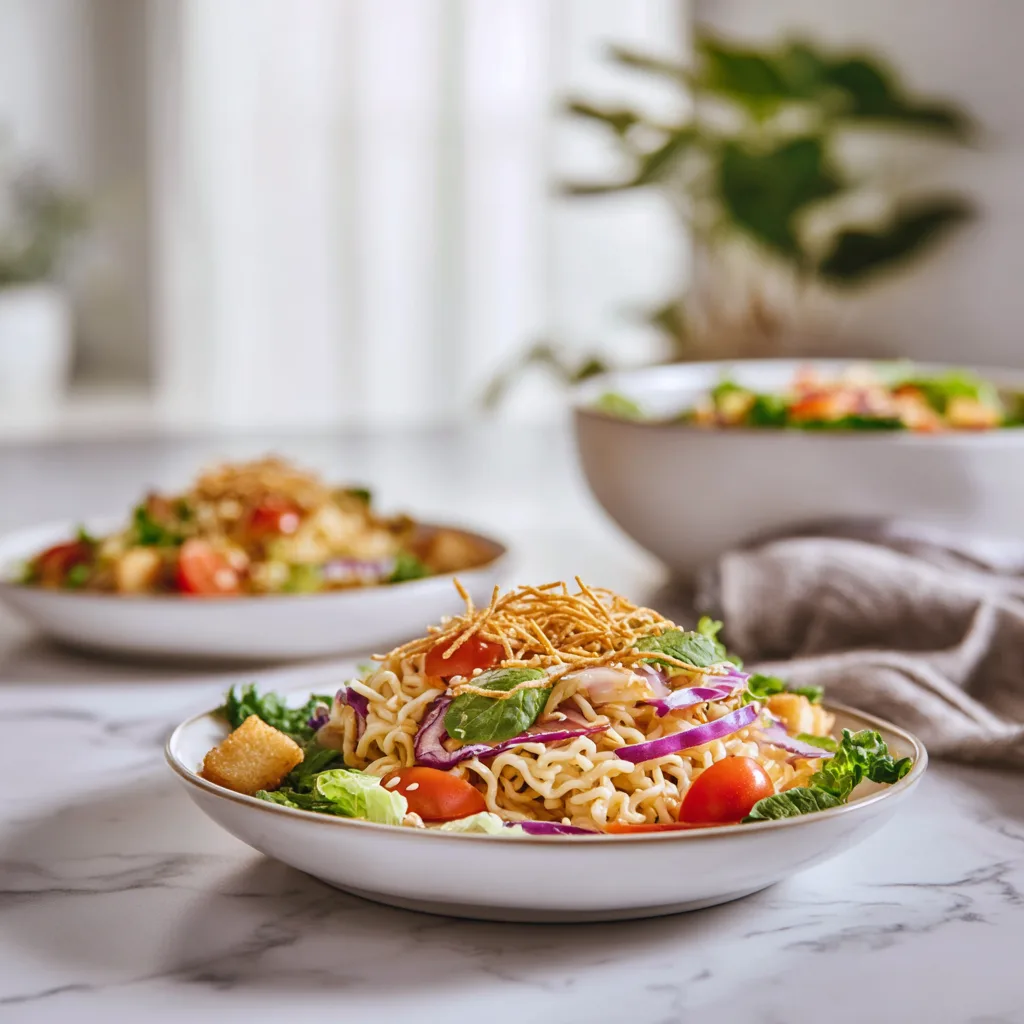 Balanced sweetness, tangy vinegar, and savory seasoning packets create a dressing that enhances—not masks—the vegetables. Toasted noodles and nuts provide lasting crunch, while cabbage keeps the salad sturdy and fresh.