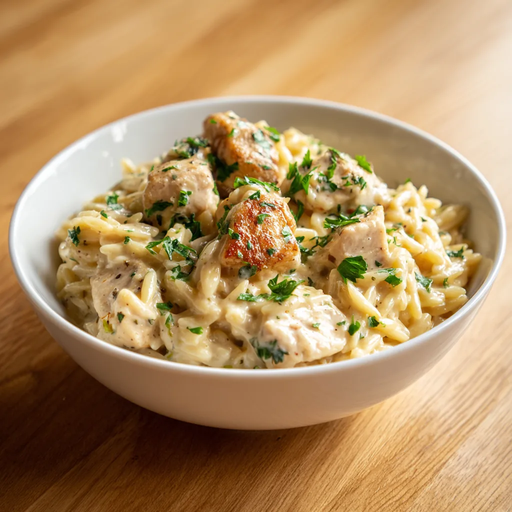 Return chicken to the pot. Simmer 10–12 minutes until orzo is tender and chicken is fully cooked. - Finish creamy sauce