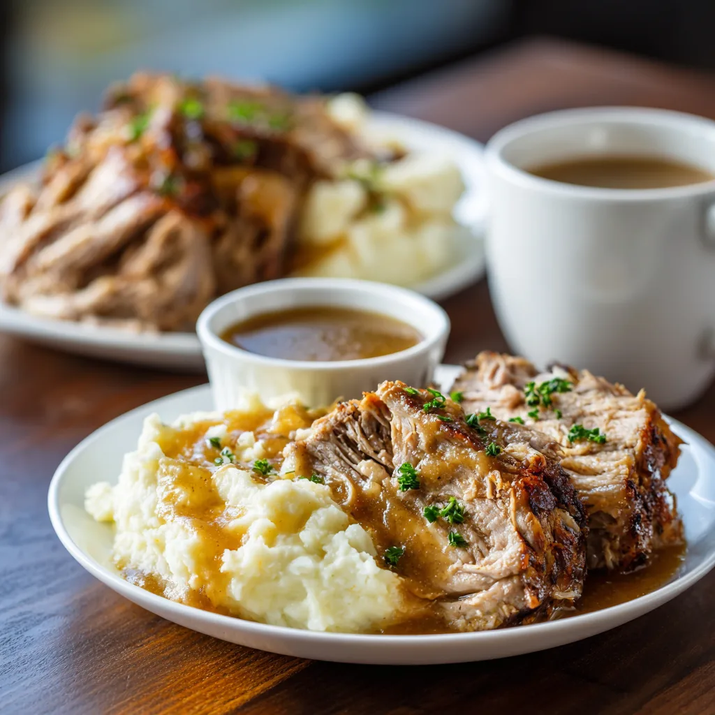 - Let rest 10 minutes, shred, and serve with pan juices or optional gravy.