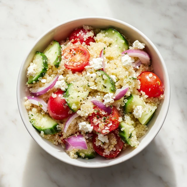 Cucumber Quinoa Feta Salad is a vibrant, refreshing dish perfect for summer lunches, meal prep, or as a light side for dinner. This salad combines fluffy quinoa with crisp cucumbers, sweet cherry tomatoes, tangy feta cheese, and a bright lemon-olive oil dressing, creating a perfect balance of flavors and textures.