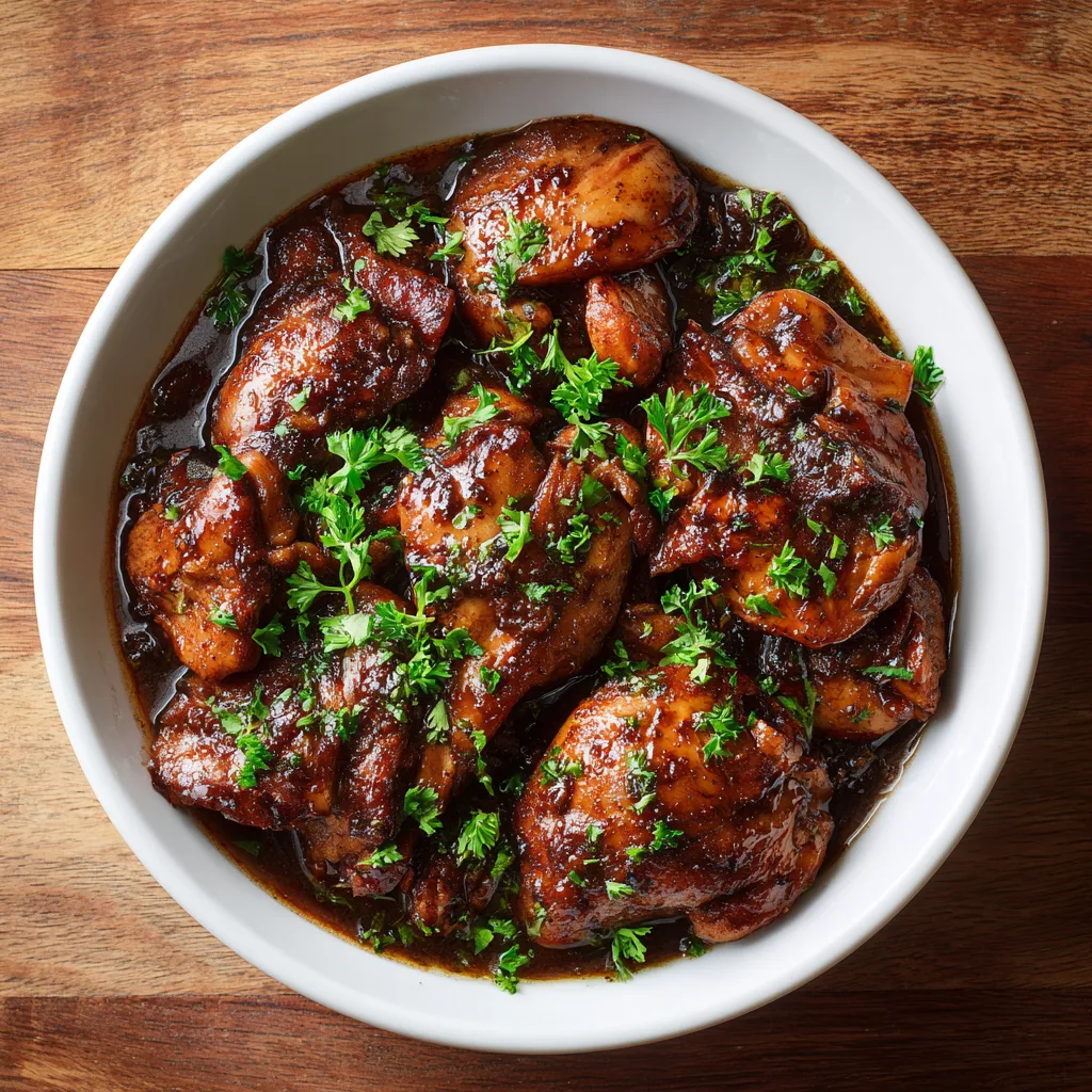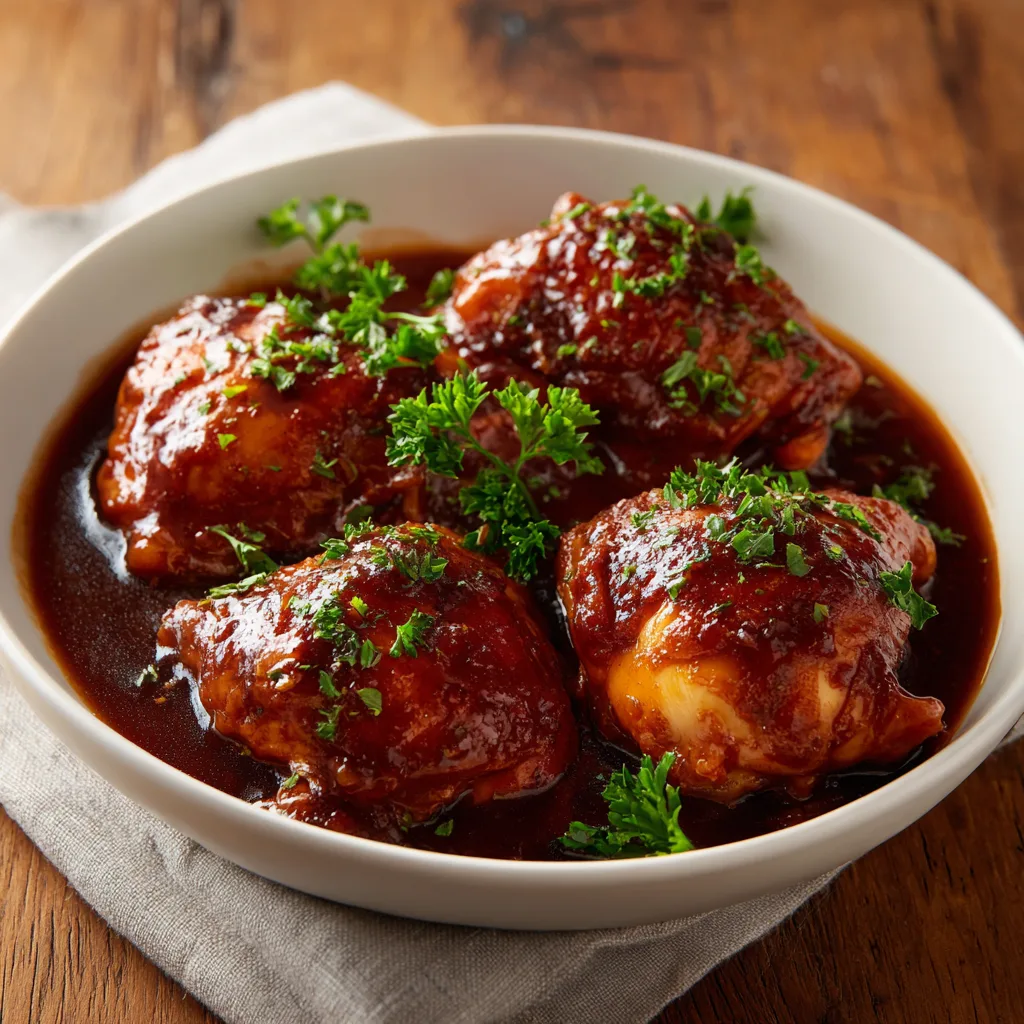 Tender chicken thighs slow-cooked in a sweet and savory bourbon sauce. Perfect for weeknight dinners or meal prep.