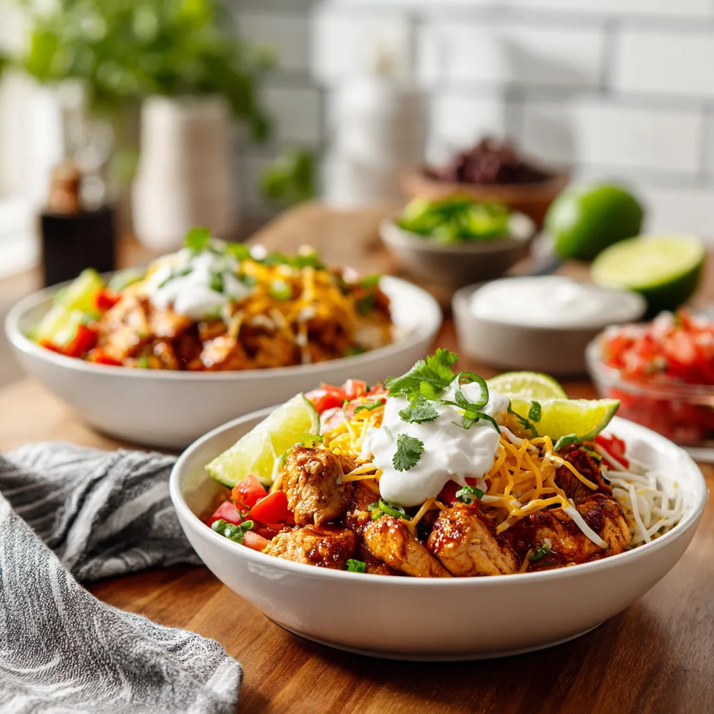 Return the chicken to the pan. Squeeze fresh lime juice over everything and toss to combine. Sprinkle chopped cilantro for a burst of freshness. - Assemble the bowls.