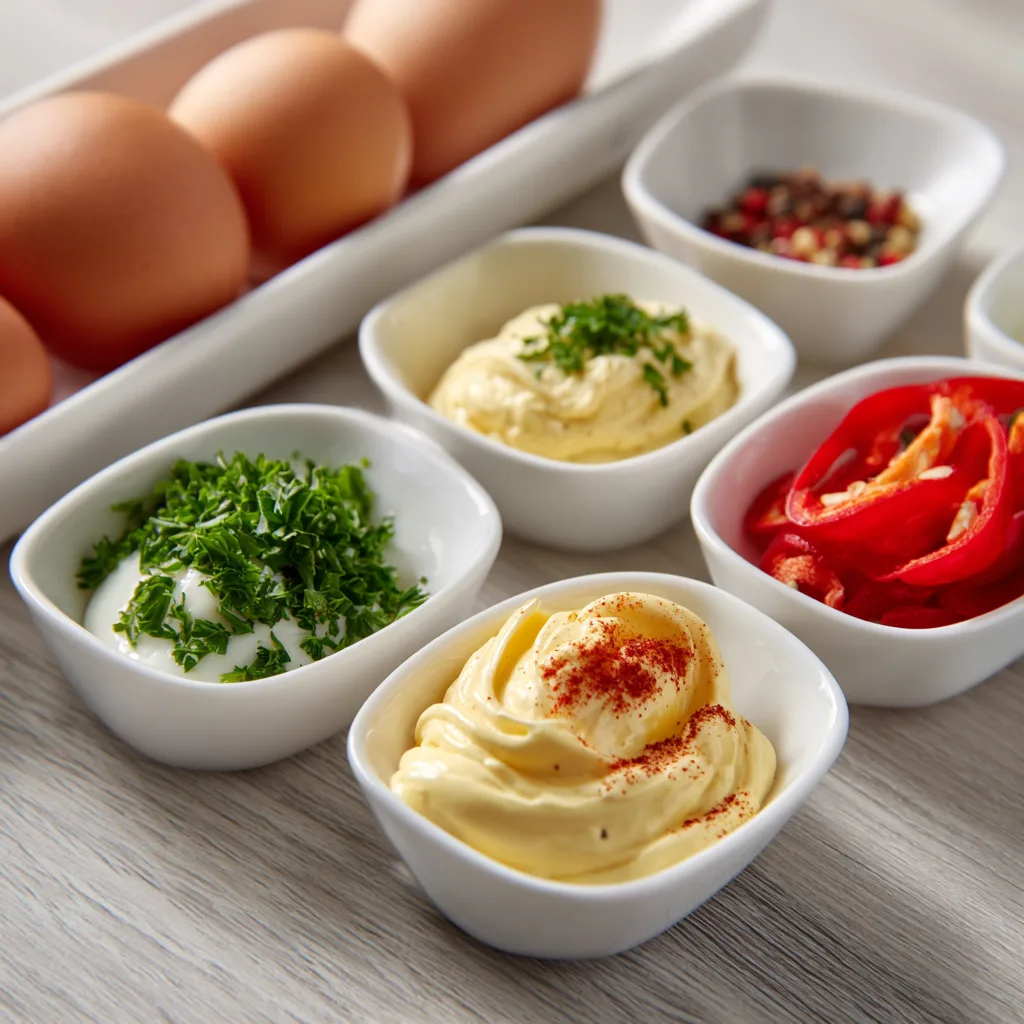 - Blend yolks with herbs and seasonings.
