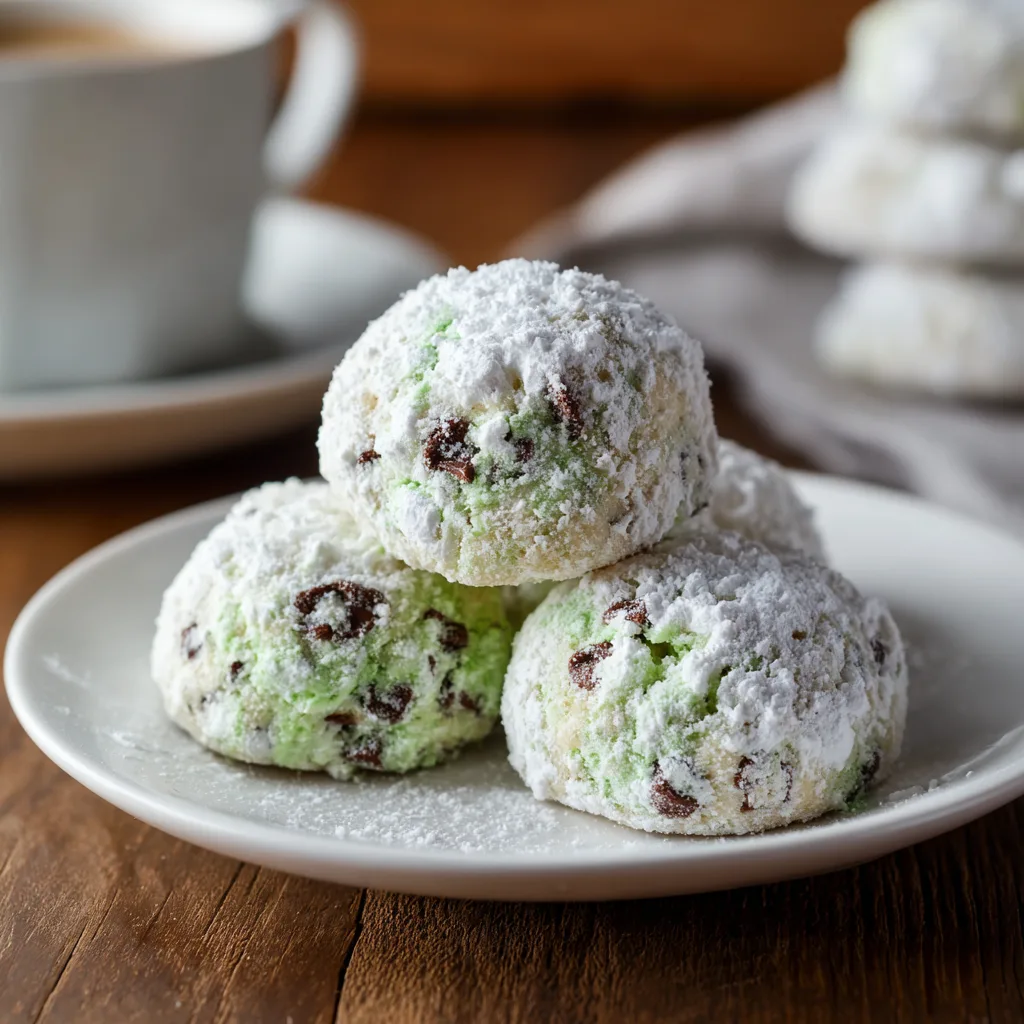 EASY MINT CHOCOLATE CHIP SNOWBALL COOKIES