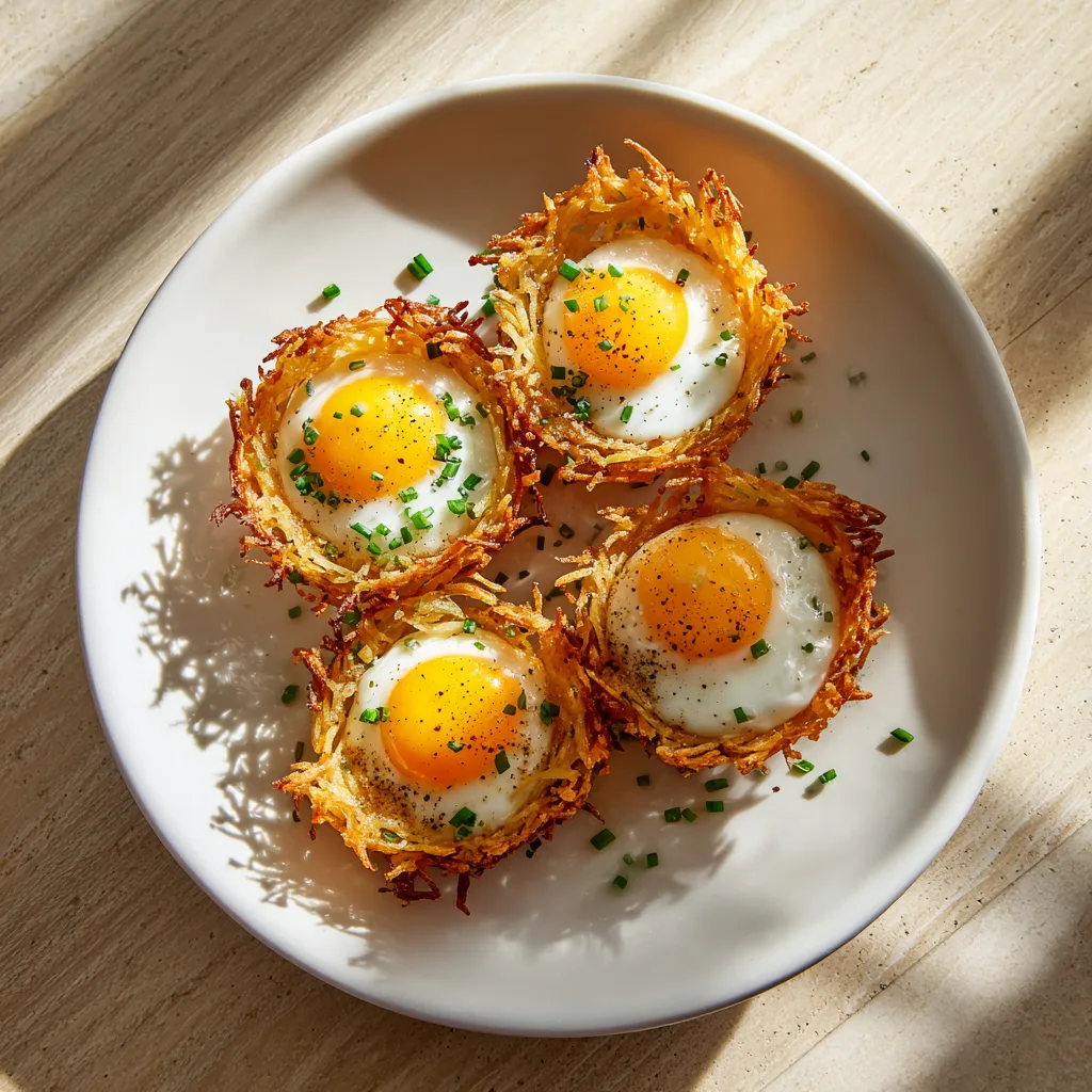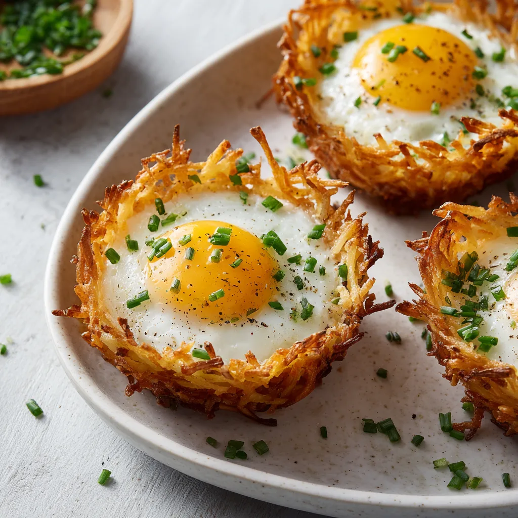 Eggs in Crispy Hash Brown Baskets – A Golden Breakfast Delight