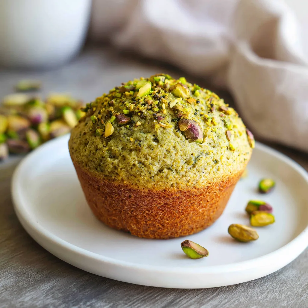 With a moist crumb and slightly crunchy pistachio topping, these muffins capture the essence of a bakery treat while being easy enough to make at home.