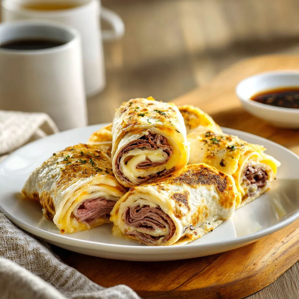This recipe transforms thinly sliced roast beef and melted cheese into a handheld snack, all rolled inside soft tortillas and served with a side of au jus or dipping sauce. The result is a crispy, melty, and flavor-packed bite that will disappear quickly at any event.