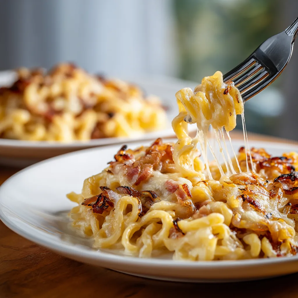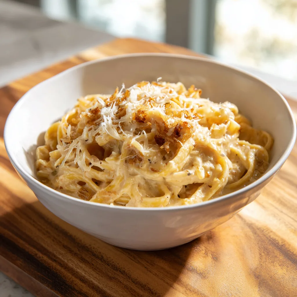 The beauty of this dish lies in its simplicity: a handful of ingredients, a careful caramelization of onions, a touch of broth, and a swirl of cheese and cream. It’s comfort food elevated — rich enough to feel indulgent, but easy enough to prepare any day of the week. Every forkful combines sweet caramelized onions, tender pasta, and a creamy, cheesy sauce that coats each strand perfectly.