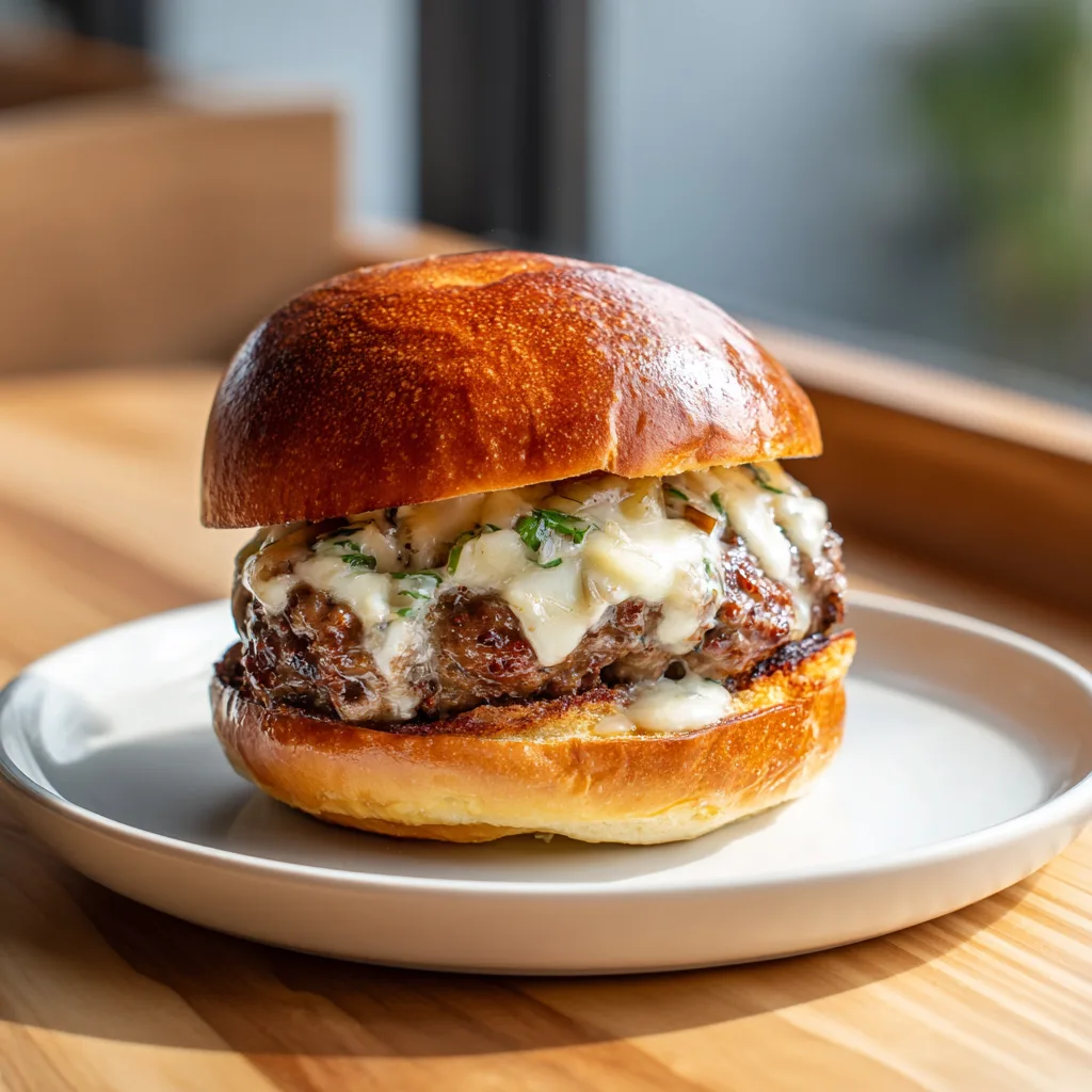 The patties are juicy and tender, enriched with minced garlic, onion, butter, and a touch of Worcestershire — seared until the edges crisp and the centers remain irresistibly moist.