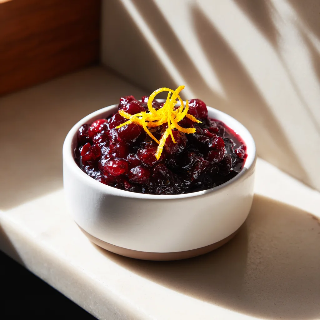 A luxurious, citrus-infused cranberry sauce with a splash of Grand Marnier, perfect for holiday dinners, Thanksgiving, and festive celebrations.
