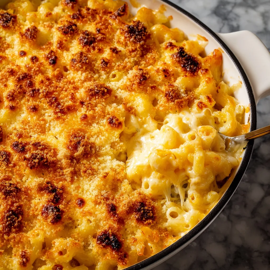 Creamy macaroni coated in rich cheese sauce and baked with a golden breadcrumb topping. The ultimate comfort food classic.
