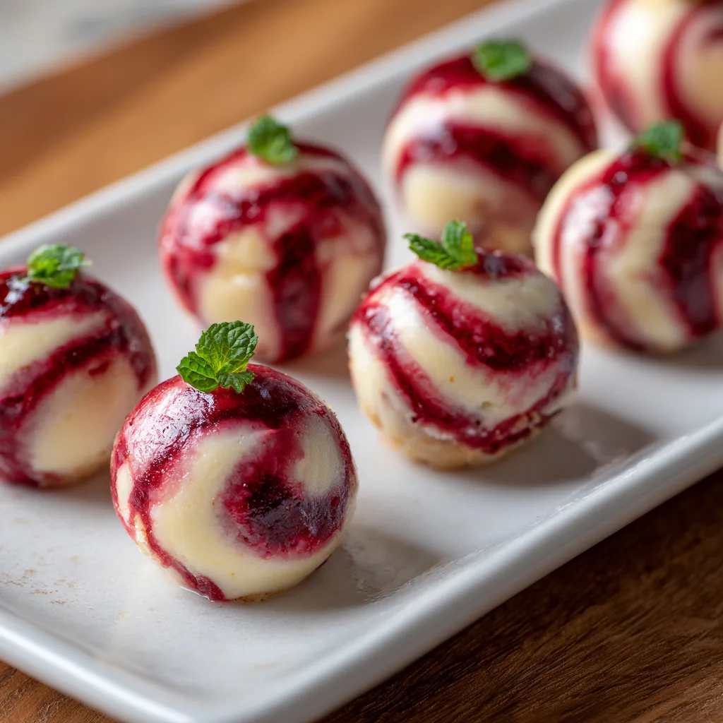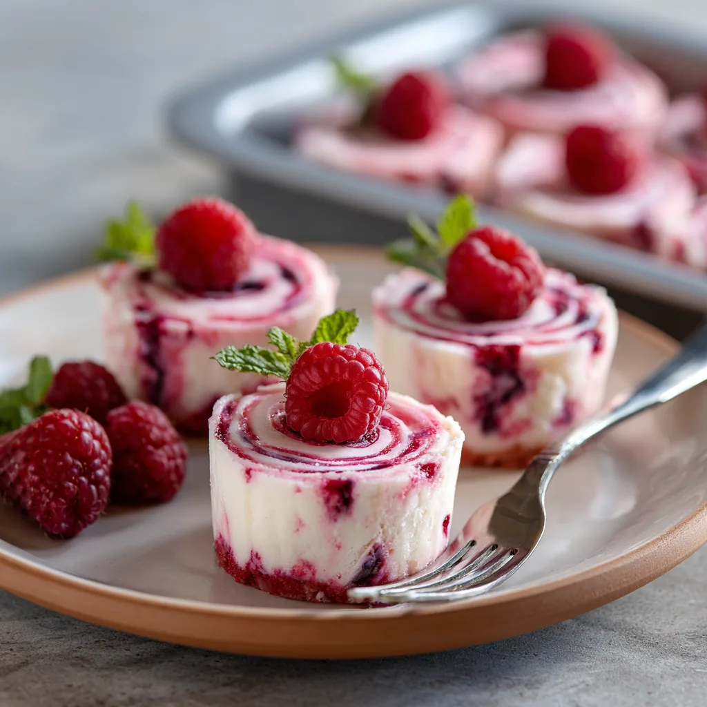 Top each bite with a fresh raspberry and mint leaf. Dust lightly with powdered sugar for that bakery-perfect finish.