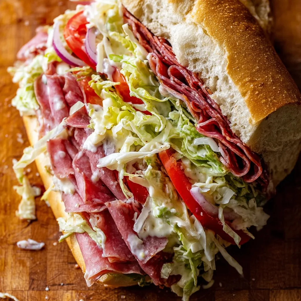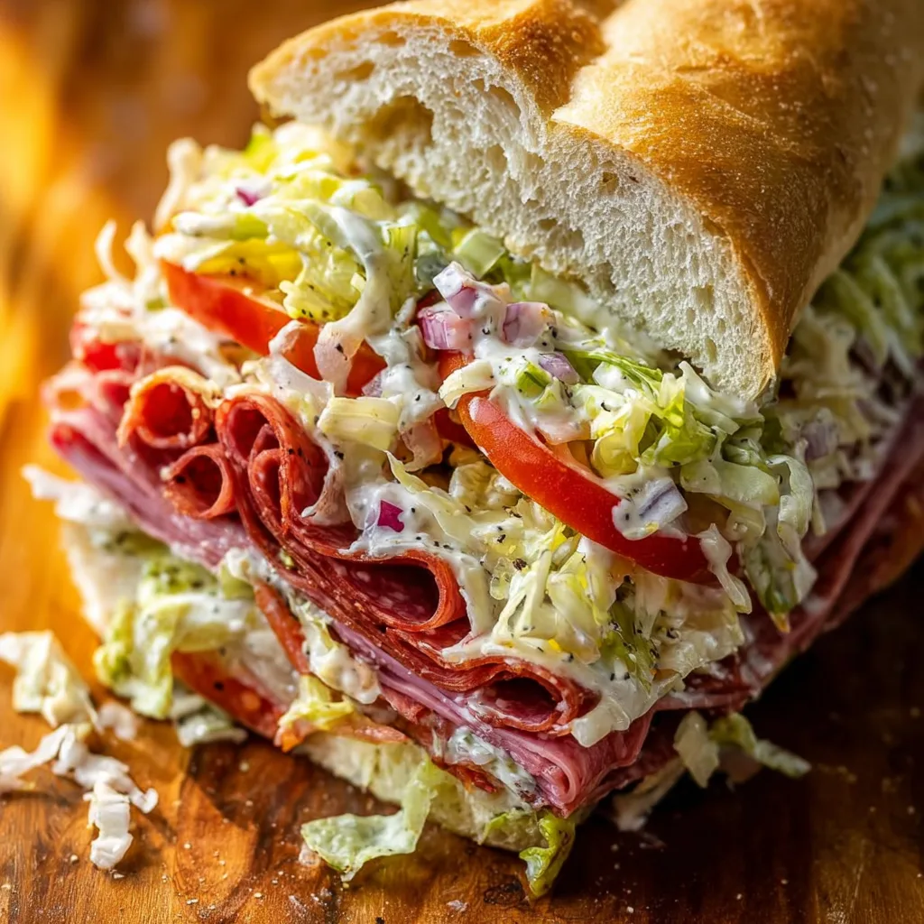 The Italian Grinder Salad Sandwich went viral for a reason — it’s indulgent, creamy, crunchy, and loaded with flavor. This sandwich combines deli-style Italian meats, melty provolone, and a creamy grinder salad slaw tucked inside a crusty sub roll. Every bite delivers savory meats, tangy dressing, and refreshing veggies, making it the ultimate crowd-pleaser.