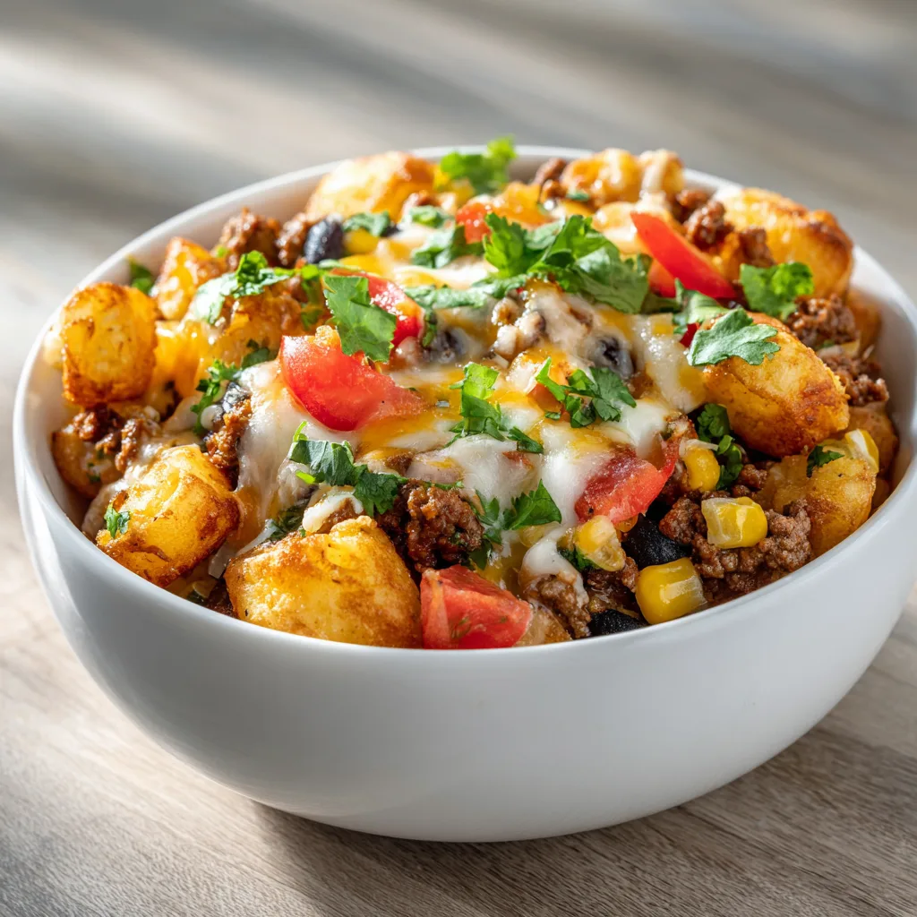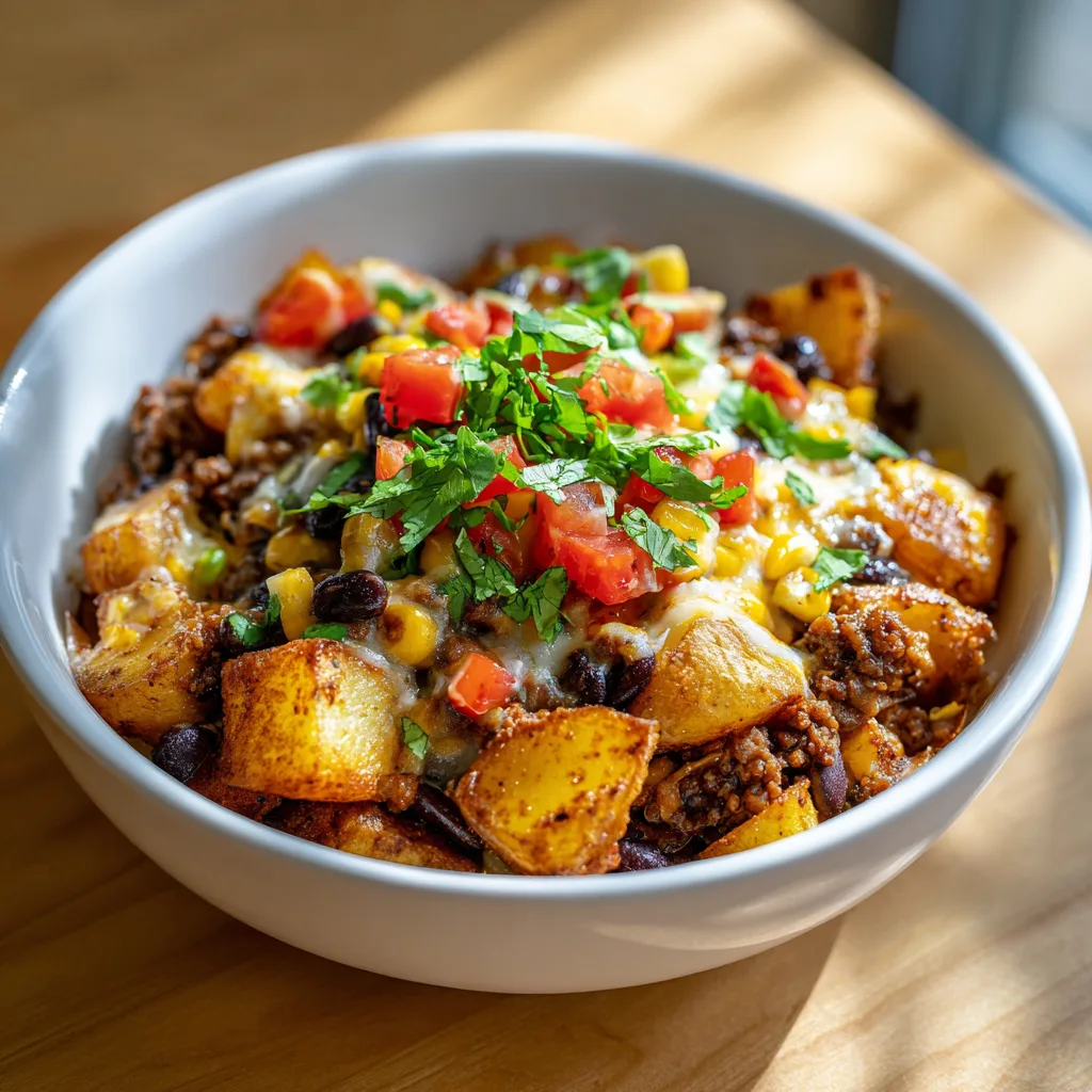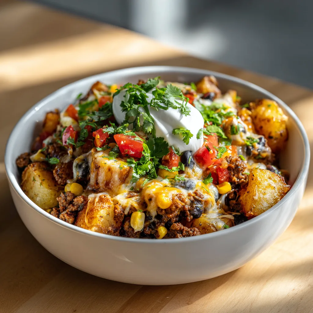 When comfort food meets Mexican-inspired flavors, magic happens. Enter the Loaded Potato Taco Bowl, a dish that combines the hearty satisfaction of baked potatoes with the zesty, savory flavors of a taco night. Imagine fluffy potato chunks, perfectly roasted and crispy on the edges, layered with seasoned ground beef, black beans, corn, fresh tomatoes, and a generous drizzle of melted cheese. Each bite brings together creamy, cheesy, and spicy elements, all packed in a single bowl. It’s indulgence, comfort, and convenience all at once.