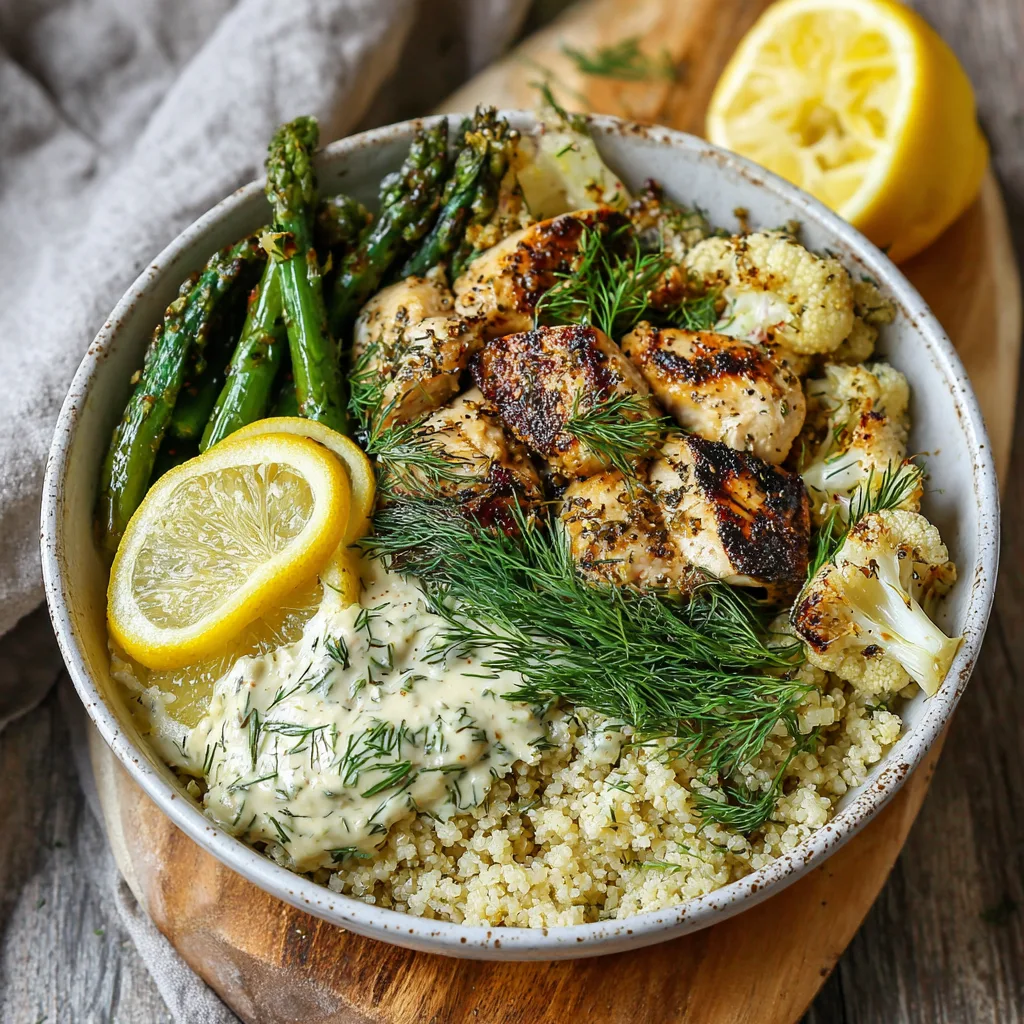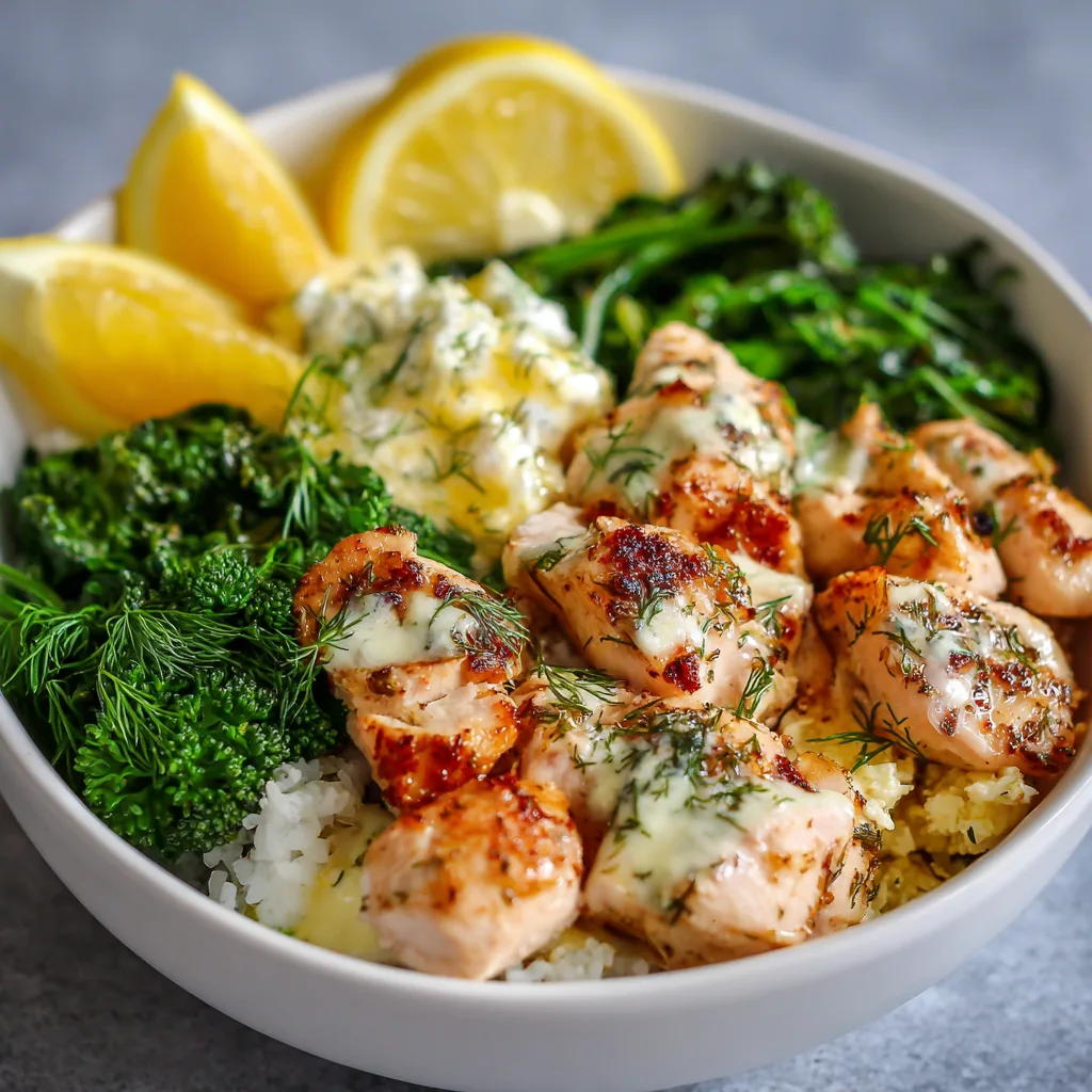 Low Carb High Protein Lemon Dill Chicken Bowl