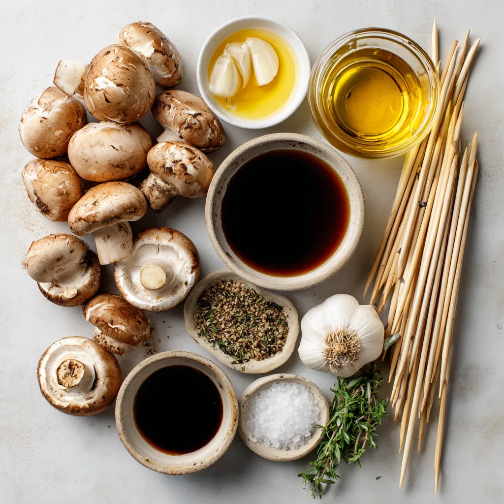 Toss mushrooms in marinade, ensuring they are fully coated. Let sit for at least 10 minutes. - Assemble Skewers: