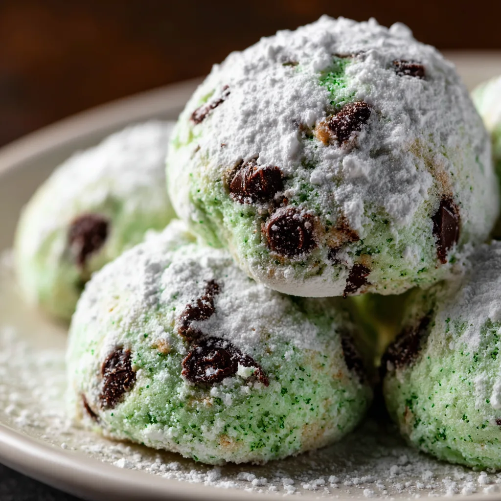 Mint Chocolate Chip Snowball Cookies
