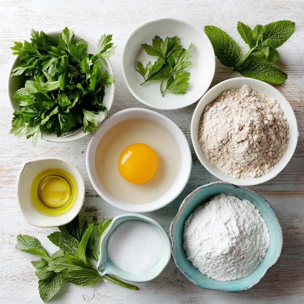 2. Combine flour, parsley, and mint in a bowl.