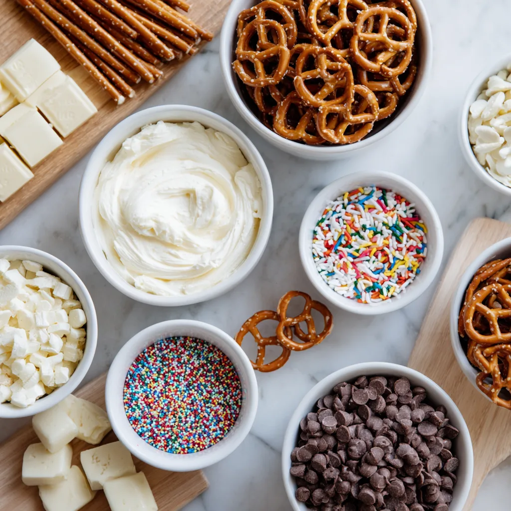 1. In a mixing bowl, combine crushed vanilla sandwich cookies, softened cream cheese, vanilla extract, almond extract, powdered sugar, and salt.