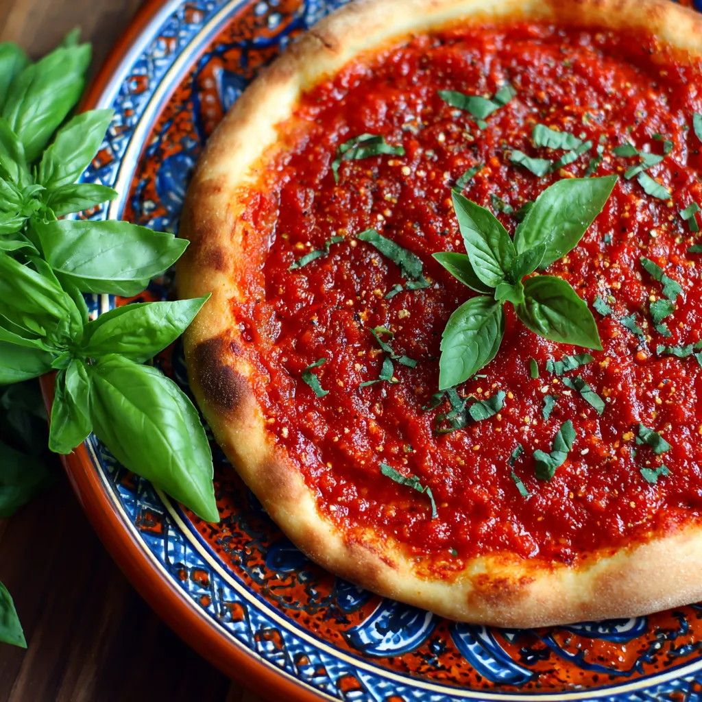 There’s nothing quite like the taste of fresh San Marzano tomatoes on a homemade pizza. With this no-cook pizza sauce, you get the rich flavor of authentic Italian tomatoes, fragrant basil, and a hint of garlic — without ever turning on the stove.
