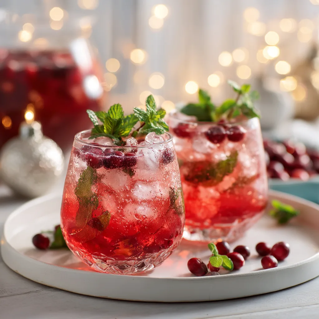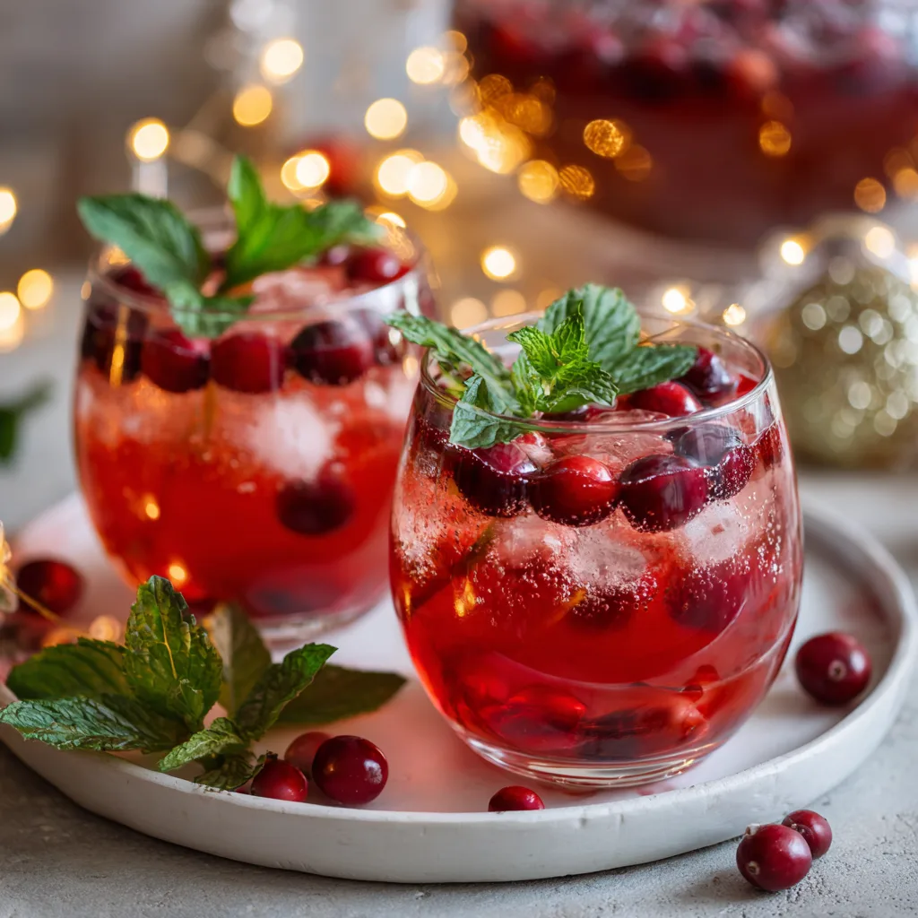 - Garnish: Add orange slices, fresh cranberries, and mint leaves to float on top.