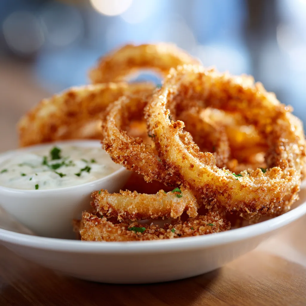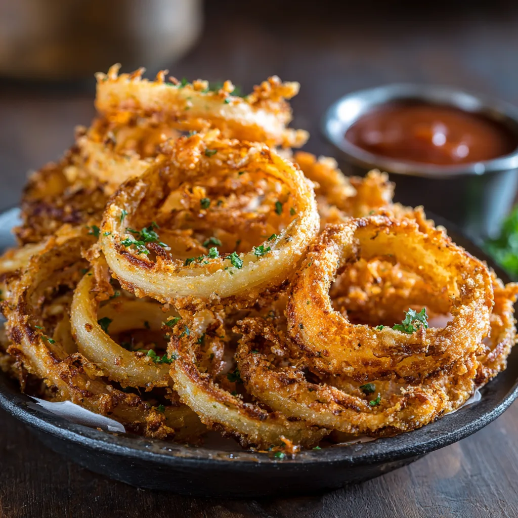 Thinly sliced onions coated in seasoned batter and fried or air-fried to crispy perfection. A crunchy, addictive snack for any occasion.