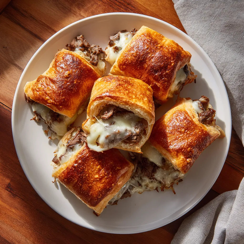 These rolls capture everything you love about the sandwich — savory beef, gooey cheese, and aromatic veggies — but in a fun, handheld version that’s baked until golden brown. They’re crispy on the outside, cheesy and juicy inside, and guaranteed to disappear fast at any gathering.