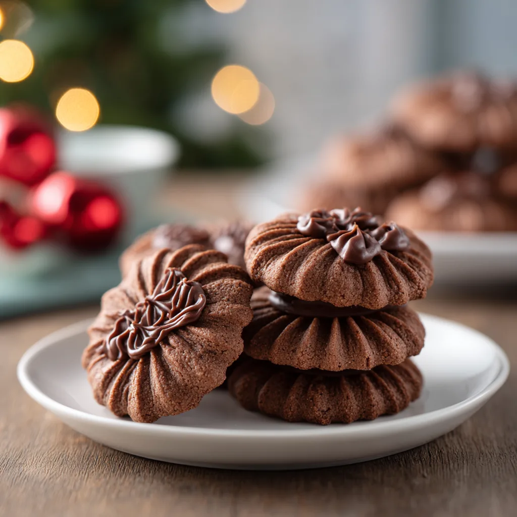 These cookies combine simple ingredients—butter, sugar, flour, cocoa, and a touch of vanilla—with a piping bag to create bakery-style elegance. They’re delicate, melt-in-your-mouth, and can be decorated with chocolate drizzle or sprinkles for extra flair.