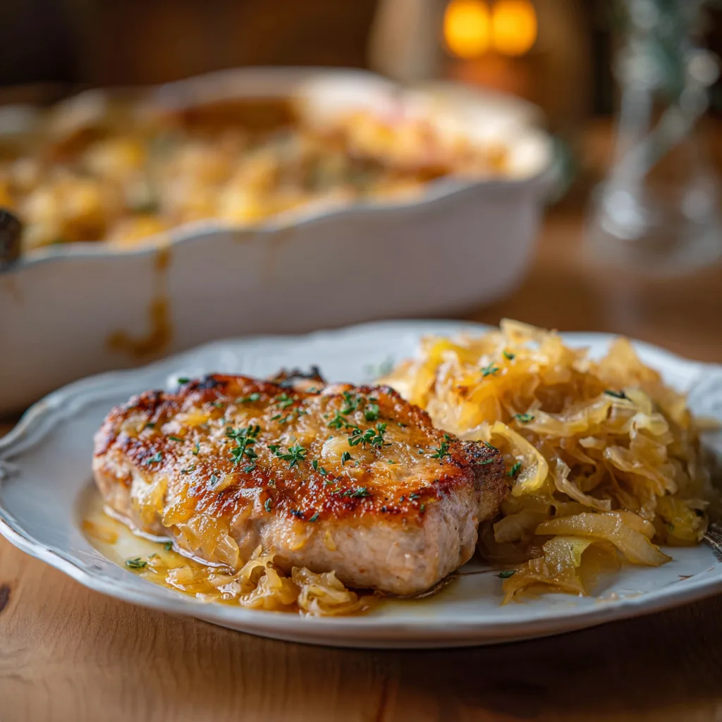 - Place the seared pork chops in a single layer over the sauerkraut.