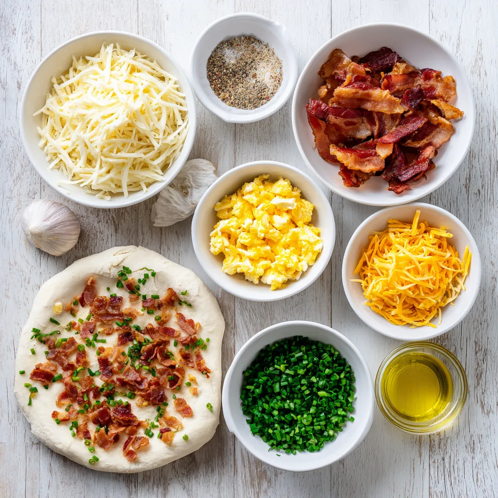 - Classic Bacon & Egg Pizza – Crispy bacon, scrambled eggs, mozzarella, and cheddar.