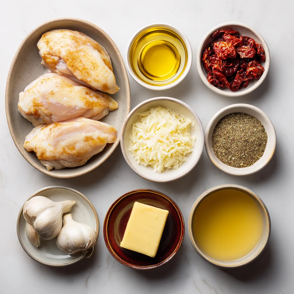 Season chicken breasts with salt and pepper. Heat olive oil in a skillet and sear chicken 4–5 minutes per side until golden. Remove and set aside. - Make the Sauce Base