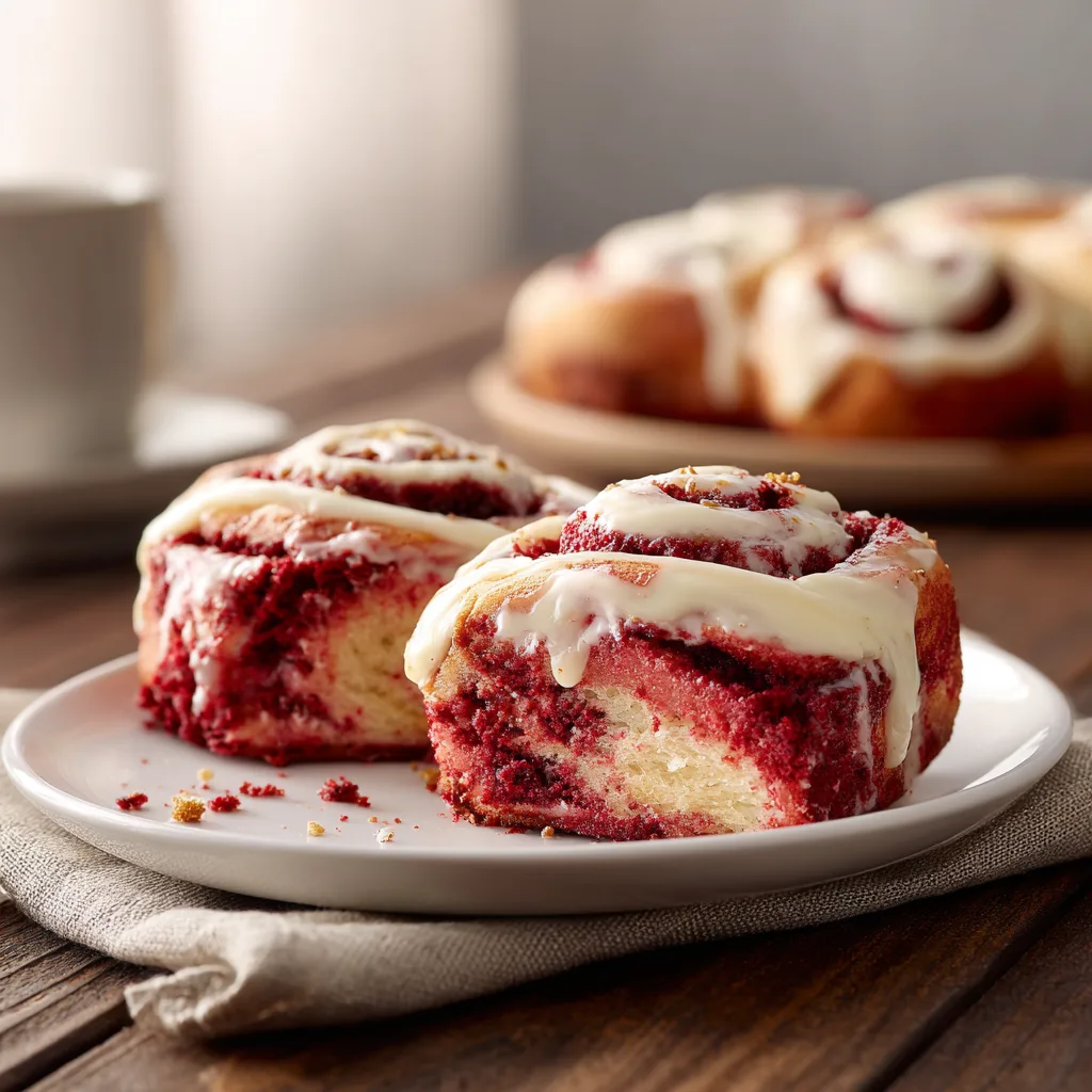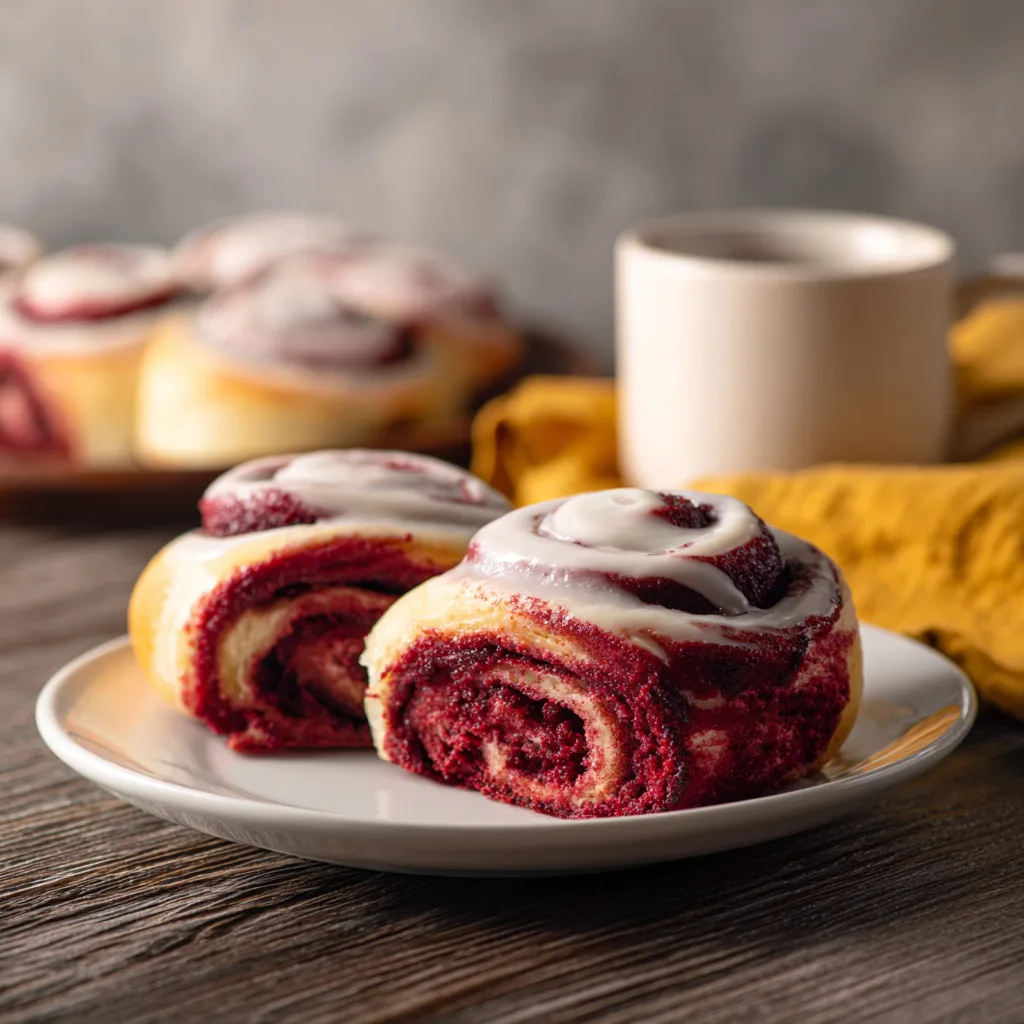 Inspired by the classic red velvet cake, these cinnamon rolls combine two beloved treats: the comforting, swirled cinnamon roll and the rich, indulgent red velvet cake. The result is an eye-catching, festive treat perfect for Valentine’s Day or any special occasion.