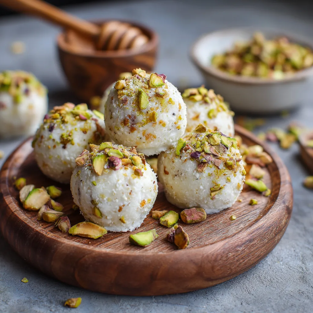 No-bake, bite-sized treats with creamy ricotta, crunchy pistachios, and sweet honey, perfect for parties and elegant desserts.