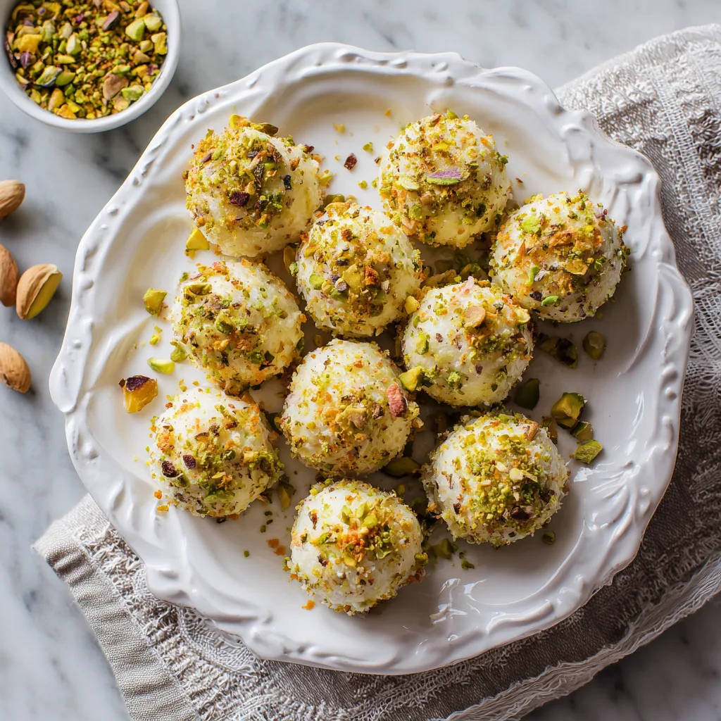 4. Roll each ball in finely chopped pistachios until evenly coated.