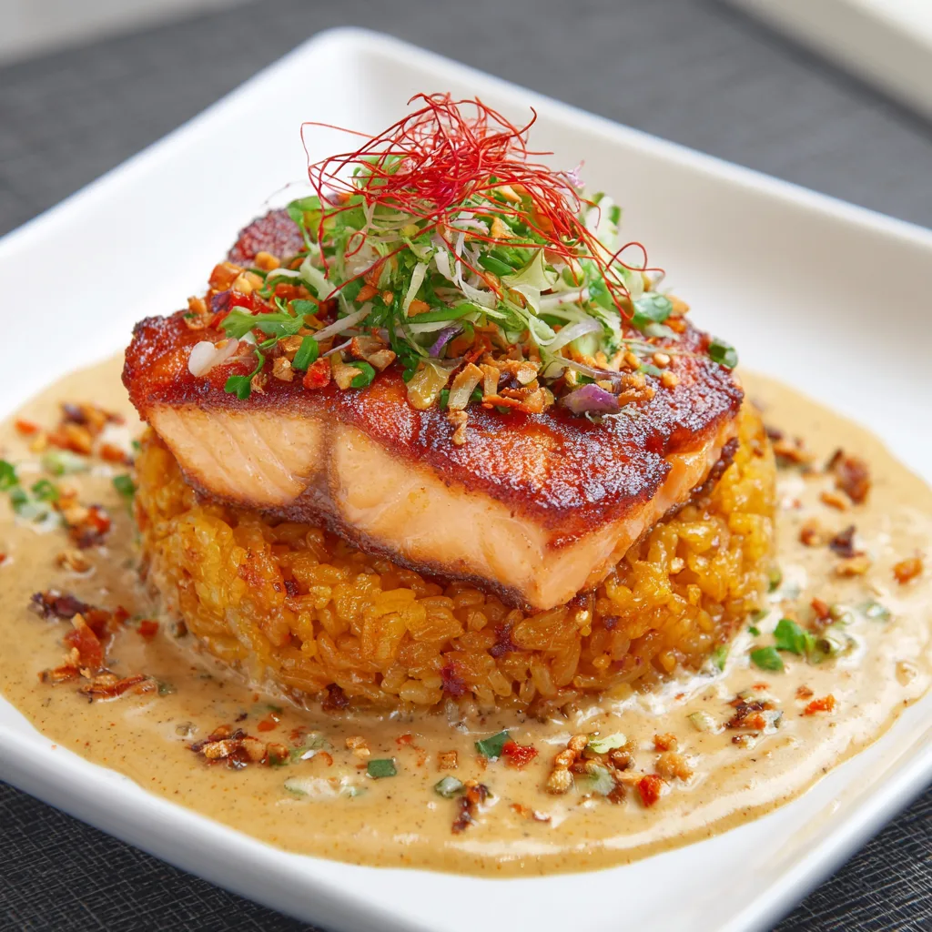 Salmon Crispy Rice – Golden Crunchy Rice Topped with Creamy Spiced Salmon
