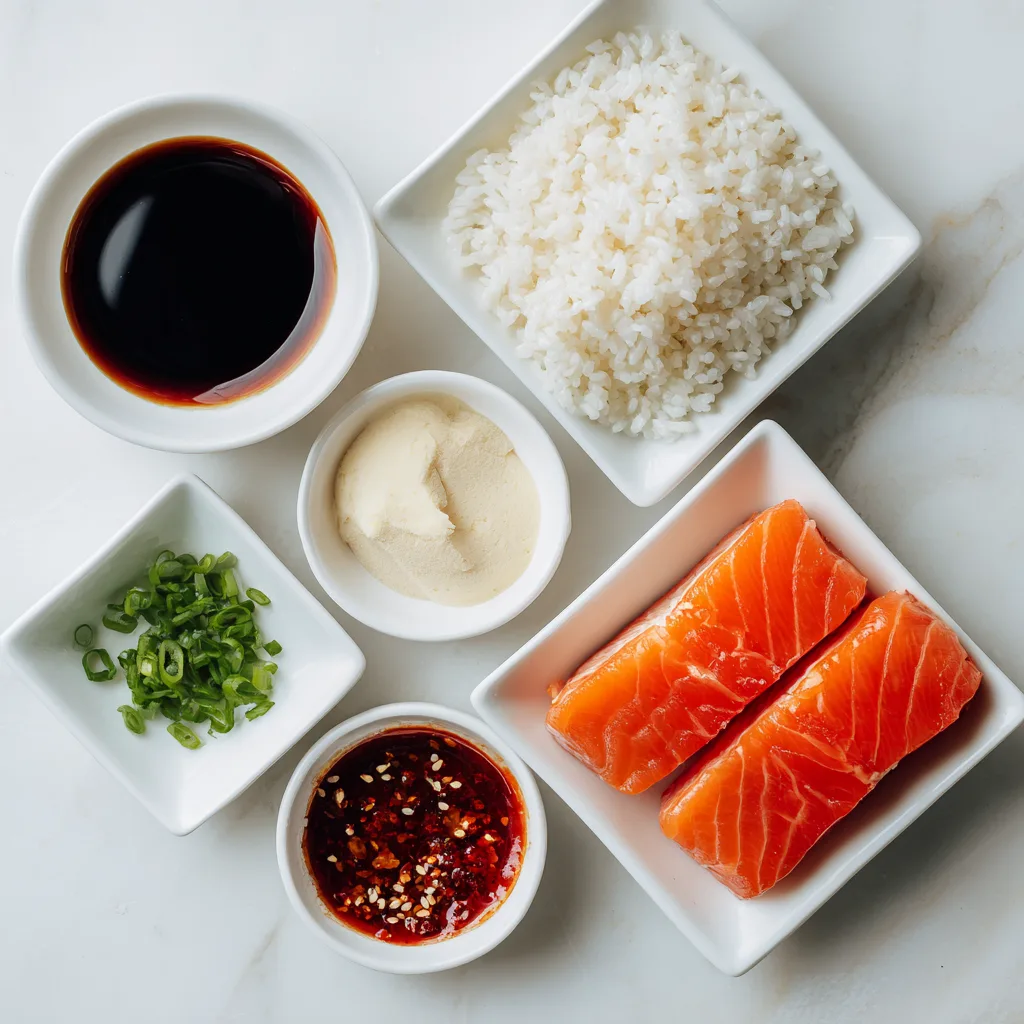 - In a separate bowl, mix diced salmon with mayonnaise, soy sauce, sesame oil, sriracha, and citrus juice.