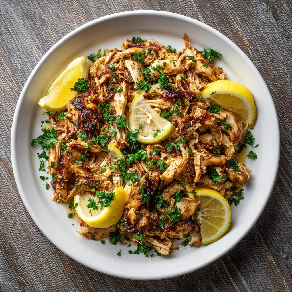 • Party Platter: Serve shredded chicken with sides of pickles, olives, and flatbreads for a fun buffet.