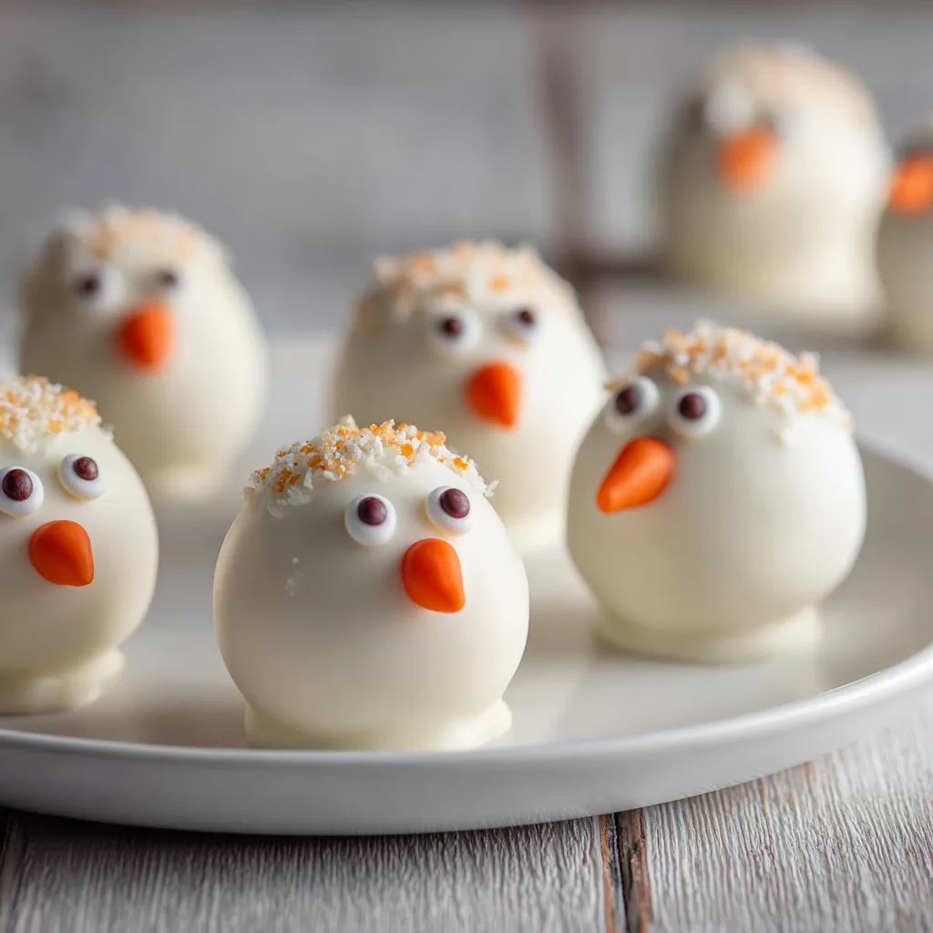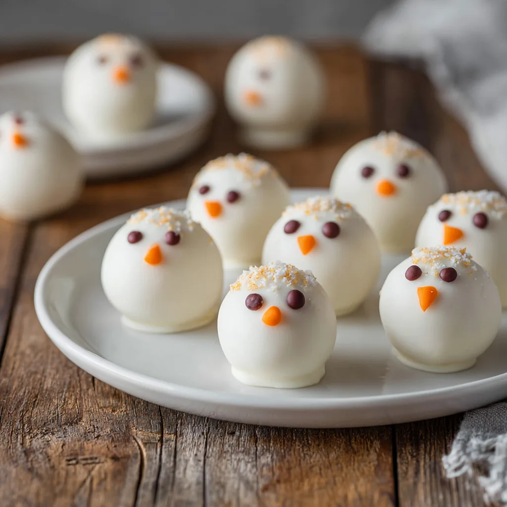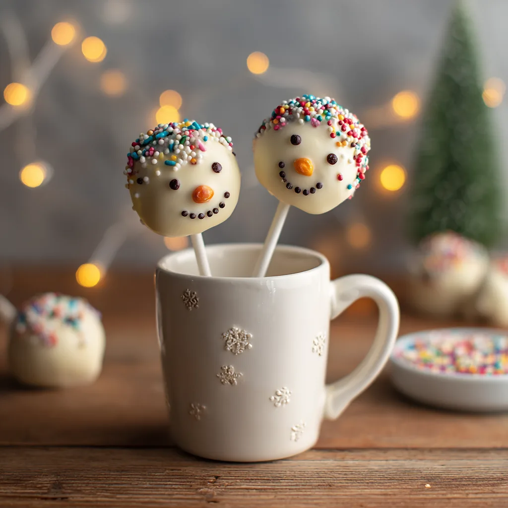 Adorable and festive snowman-shaped cake pops coated in white chocolate and decorated with candy faces. Perfect for holiday baking and kids’ fun!
