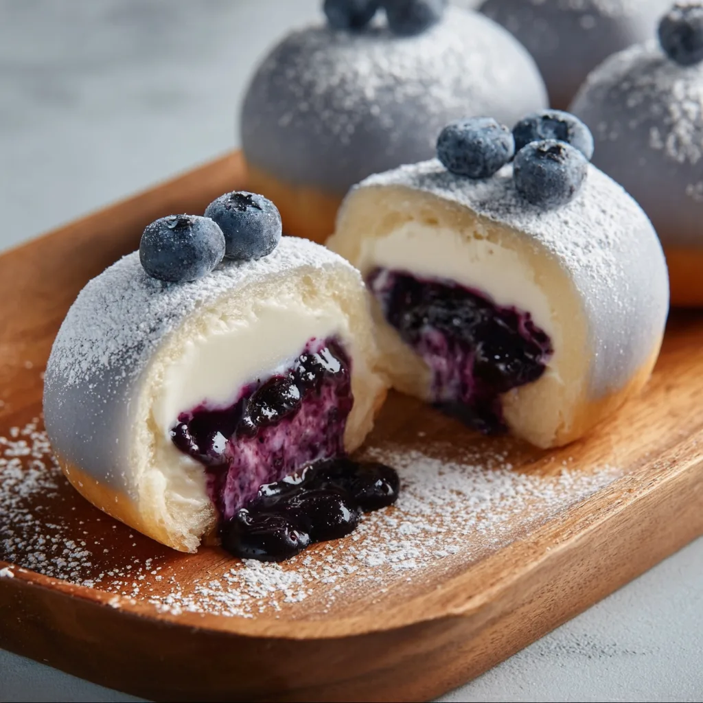Soft Mochi Buns with Blueberry Cream Filling – A Dreamy Japanese-Inspired Dessert