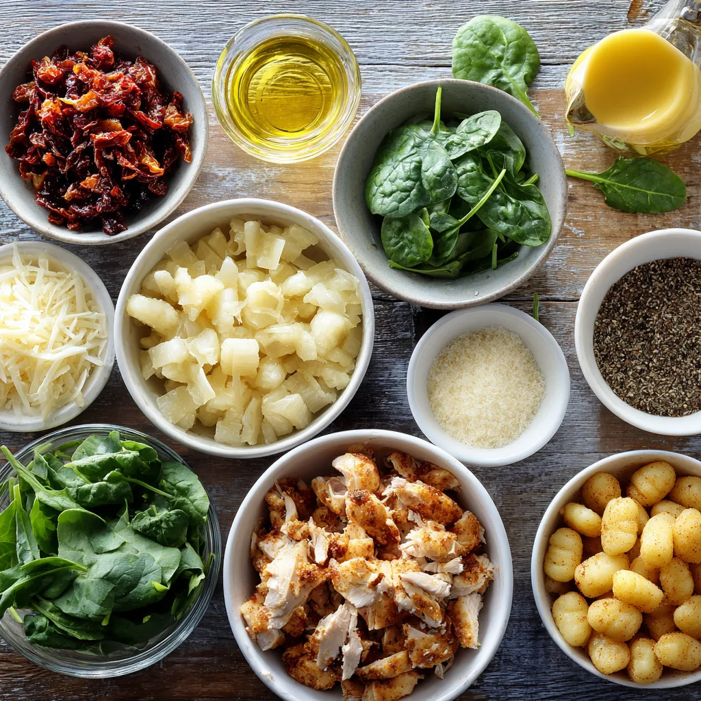 - Vegetables: Spinach and sun-dried tomatoes provide color and flavor.