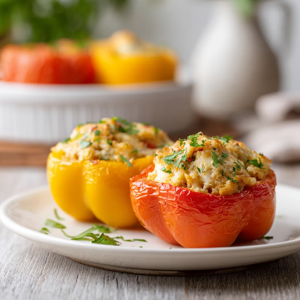 - Place stuffed peppers on a baking sheet and bake for 15–20 minutes until heated through.