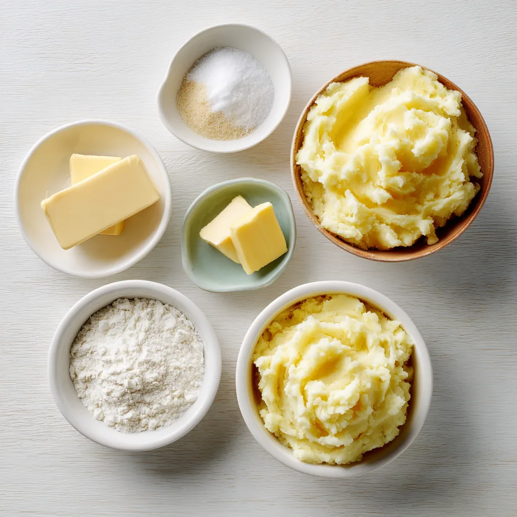 - Combine mashed potatoes, flour, salt, baking soda, and melted butter in a bowl. Mix to form a soft dough. Add milk if needed.