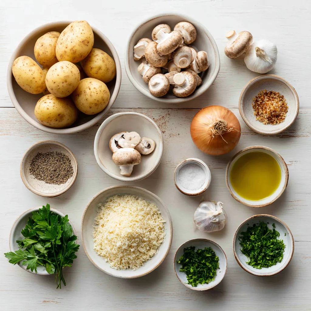 In a skillet, heat olive oil over medium heat. Sauté onions and garlic until fragrant. Add mushrooms, salt, pepper, and smoked paprika. Cook until mushrooms release moisture and begin to brown. Remove from heat and stir in parsley. - Combine Filling with Potatoes: