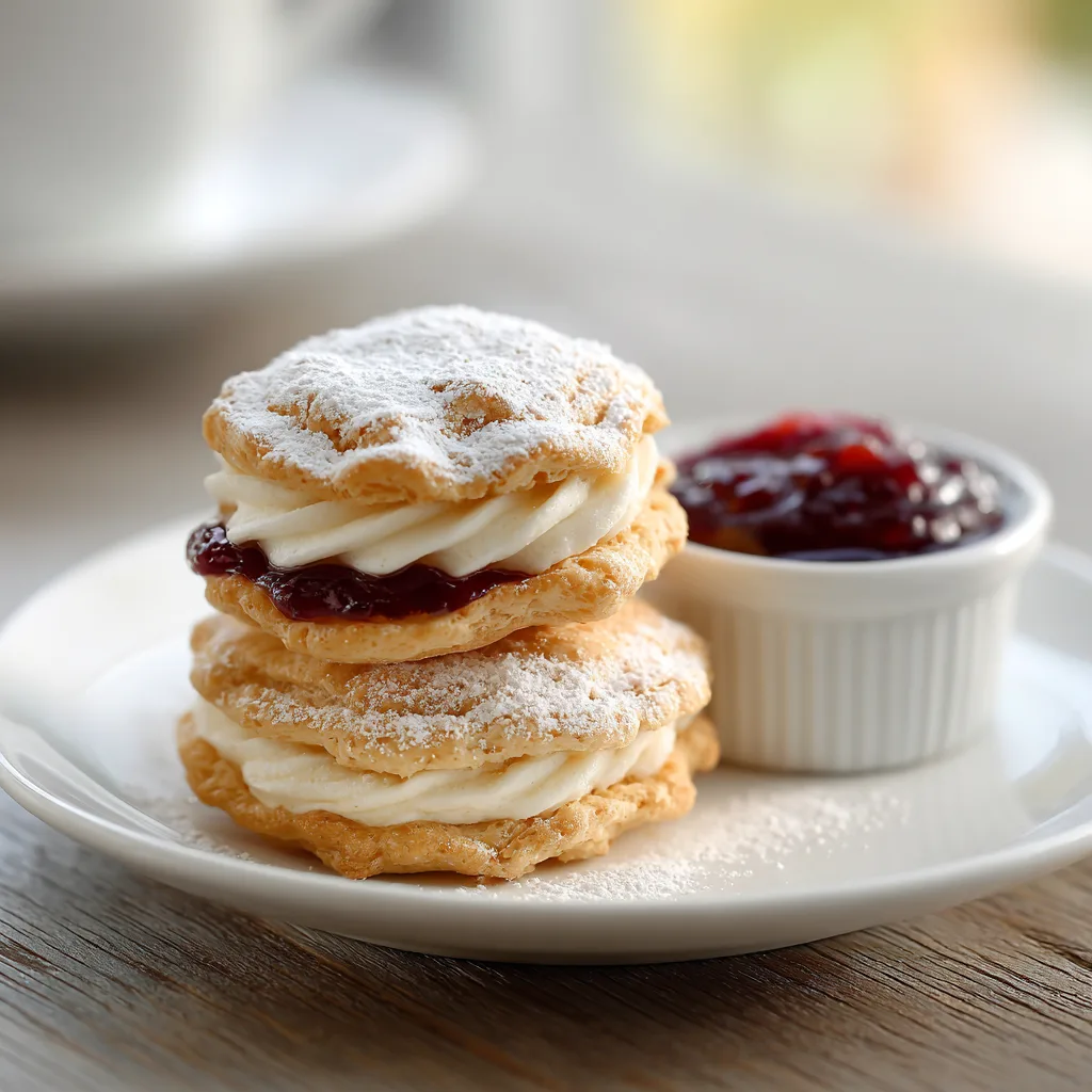 - Sandwich cookies with buttercream and jam.
